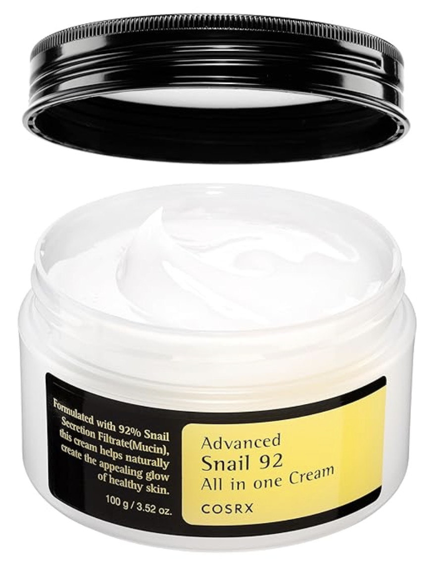 – Infused with 92% of snail mucin (also called Snail Secretion Filtrate), this cream builds a moisture barrier to plump, hydrate, and soothes skin.