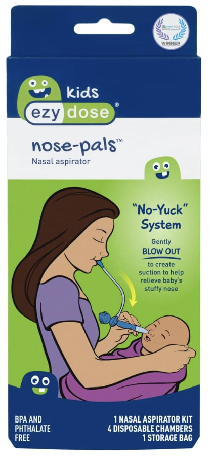 Snot sucks but you don’t have to. Nose-pals nasal Aspirator was invented for those who worry about mucus transfer from child to caregiver. The unique aspirator allows you to blow out to create suction, eliminating the need for filters and bringing peace of mind to caregivers.