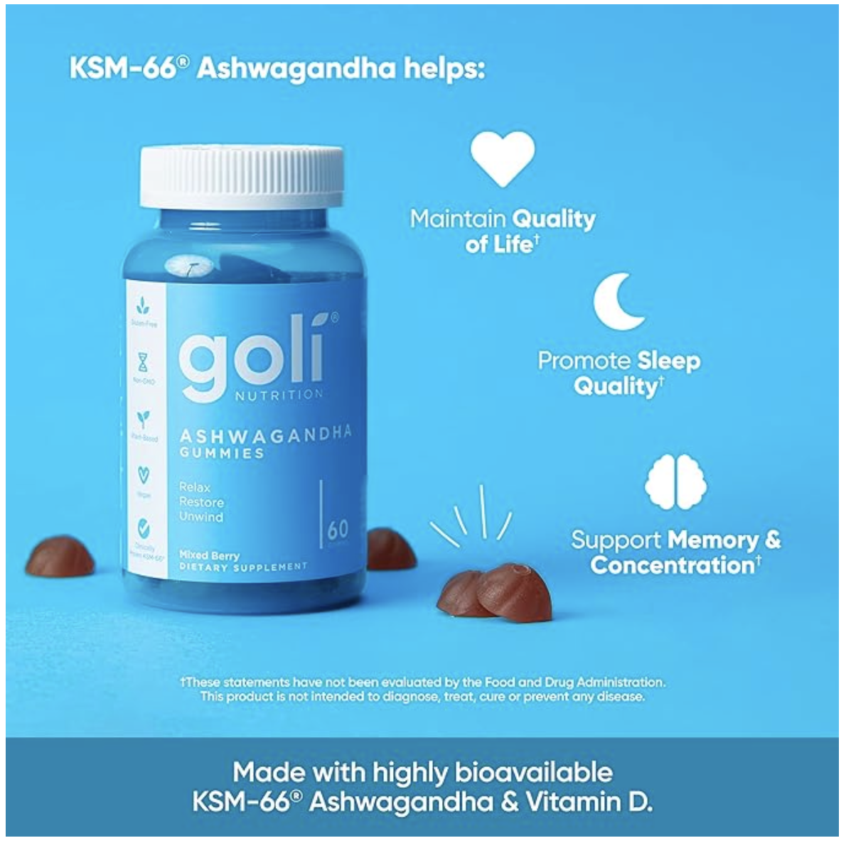 -Goli Ashwa Gummies use KSM-66 Ashwagandha, a highly bioavailable, full-spectrum root extract.